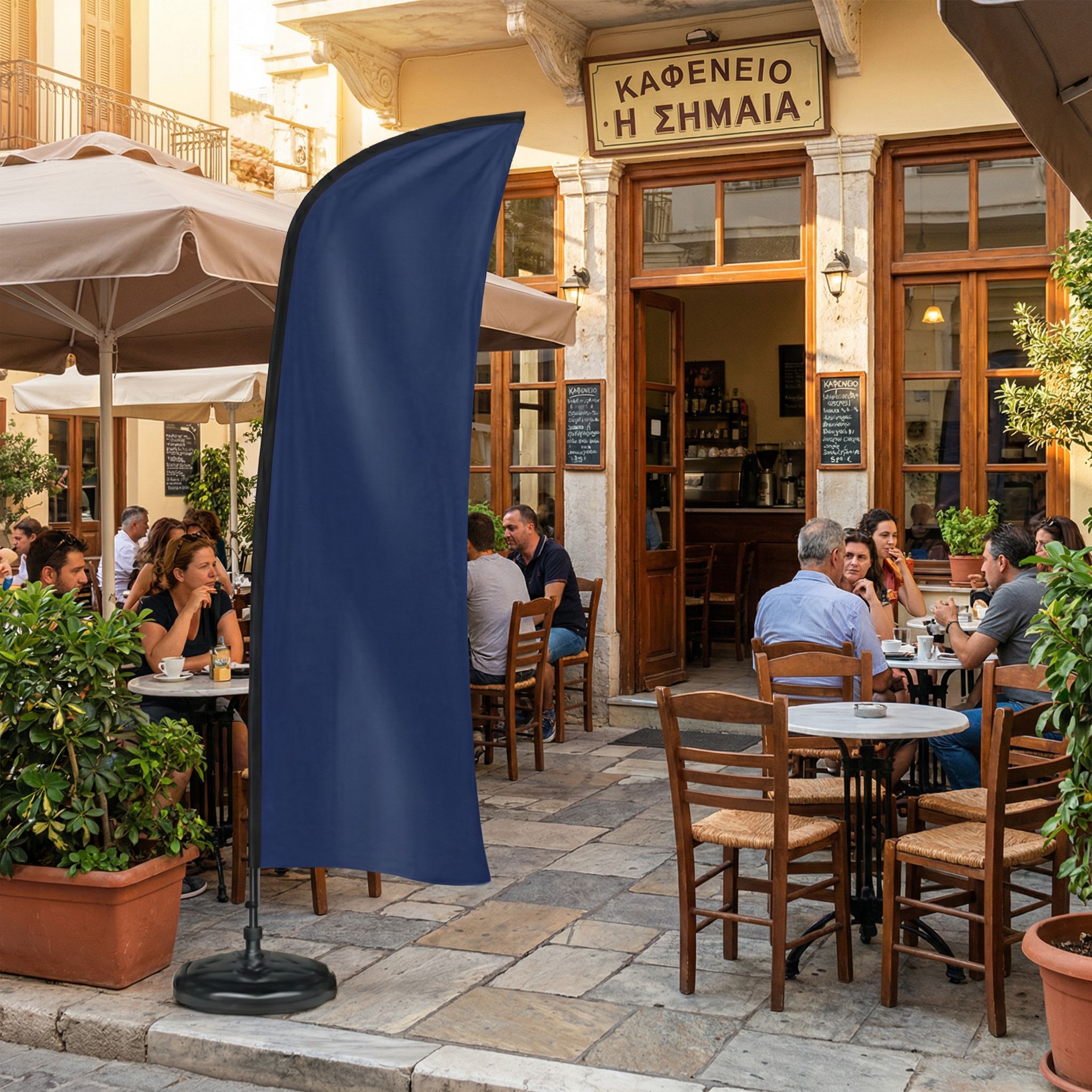 Κυματιστό Μπάνερ με σωλήνα αλουμινίου, πλαστική βάση που γεμίζει με νερό με μηχανισμό περιστροφής της εκτύπωσης για μέγιστη αντοχή στον αέρα.