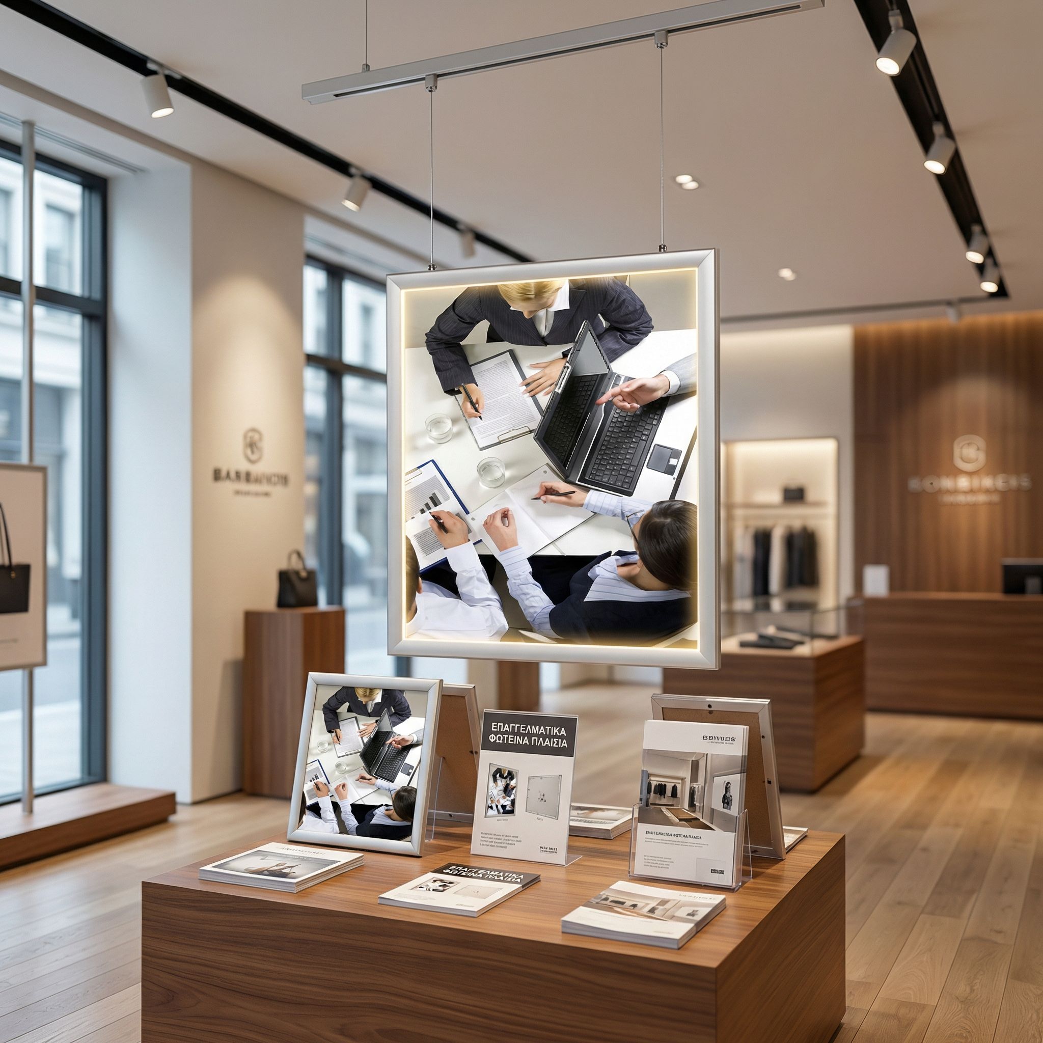 Super slim lightbox 35 mm προφιλ. Λεπτό-φωτεινό (μόνο 3,4mm πάχος. Κρεμαστό – διπλής Όψης. Φωτισμός LED. Πολύ καλή διάχυση του φωτός, χάρη στο ειδικό του πλέγμα. Με συρματόσχοινα ανάρτησης.